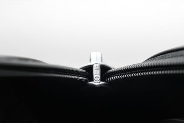 2層のエレメントがしっかり噛み合う特殊構造のセキュリティジッパー。強い衝撃を受けても不用意に開かず、こじ開けや水分の侵入も防ぎます。